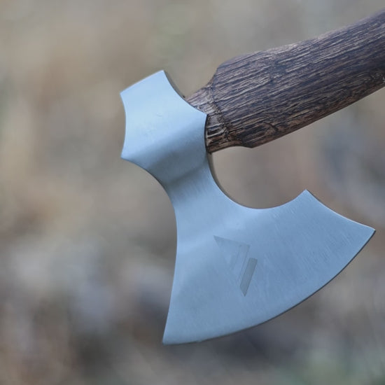 Steel, wood, leather, and fire. A quiet working axe for camp and woodpile.